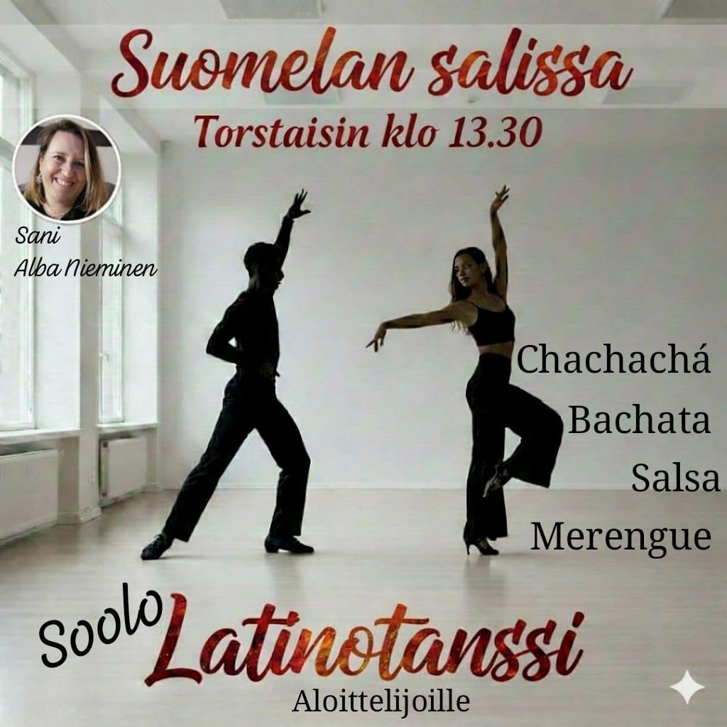 Tule mukaan Sanin latinotanssikurssille maaliskuussa. Tanssimme salissa torstaisin 12., 19. ja 26.3. klo 13.30-14.30.