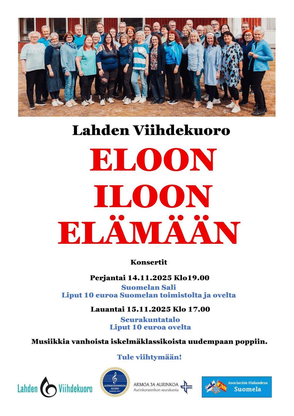 Lahden Viihdekuoron konserteissa teemana Eloon, iloon, elämään Suomalaisen iskelmämusiikin tuttuja klassikoita ja uudempia pop-musiikin helmiä kuullaan kahdessa Lahden Viihdekuoron konsertissa…