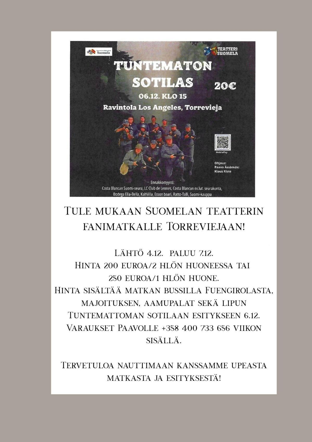 Fanimatka Torreviajaan Suomelan teatterin kanssa