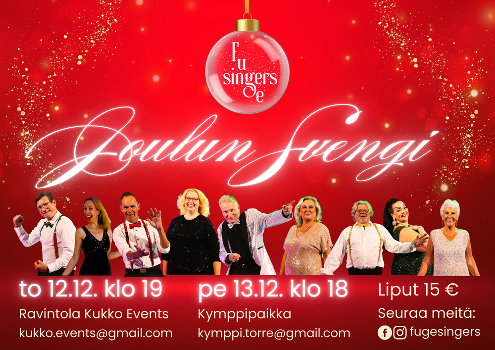 Fugesingers esittää Joulun Svengin torstaina 12.12. kello 19 Ravintola Kukko Eventsissä Fuengirolassa sekä perjantaina 13.13. kello 18 Kymppipaikassa Torremolinoksessa.