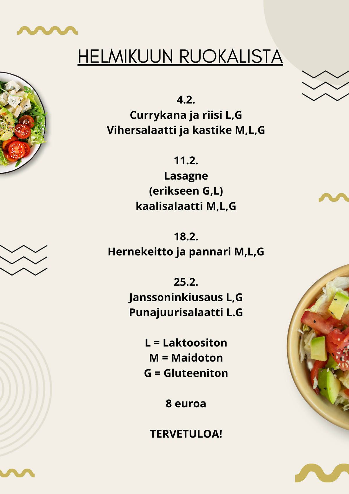 Helmikuun lounaslistaus