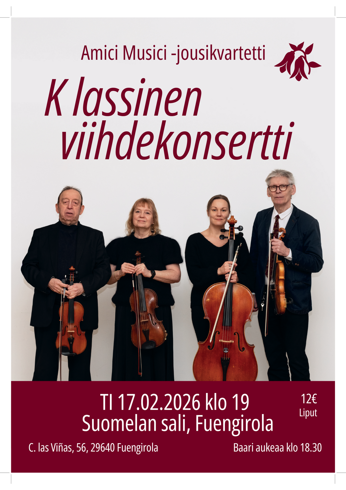 Amici Musici-jousikvartetti, klassinen viihdekonsertti, johtaa Luis Ramirez